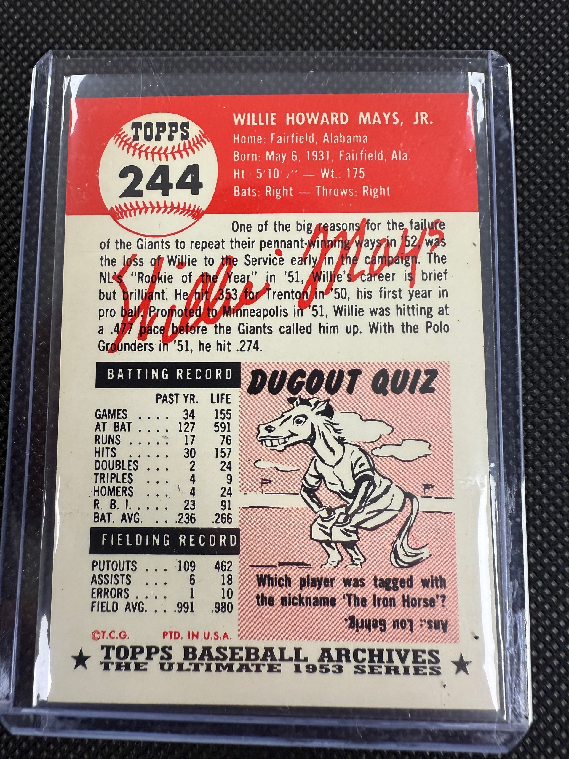 1953 ARCHIVES WILLY MAYS 91RP