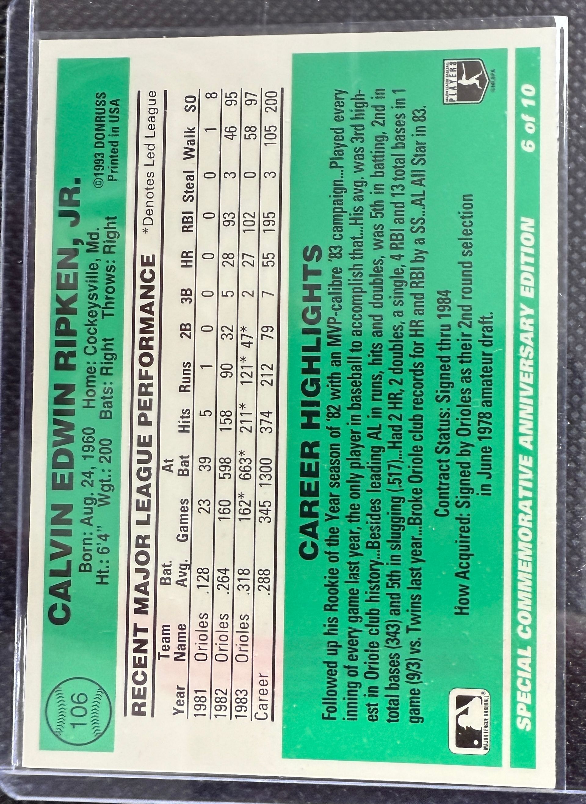 1994 DONRUSS ANNIVERSARY CAL RIPKEN JR