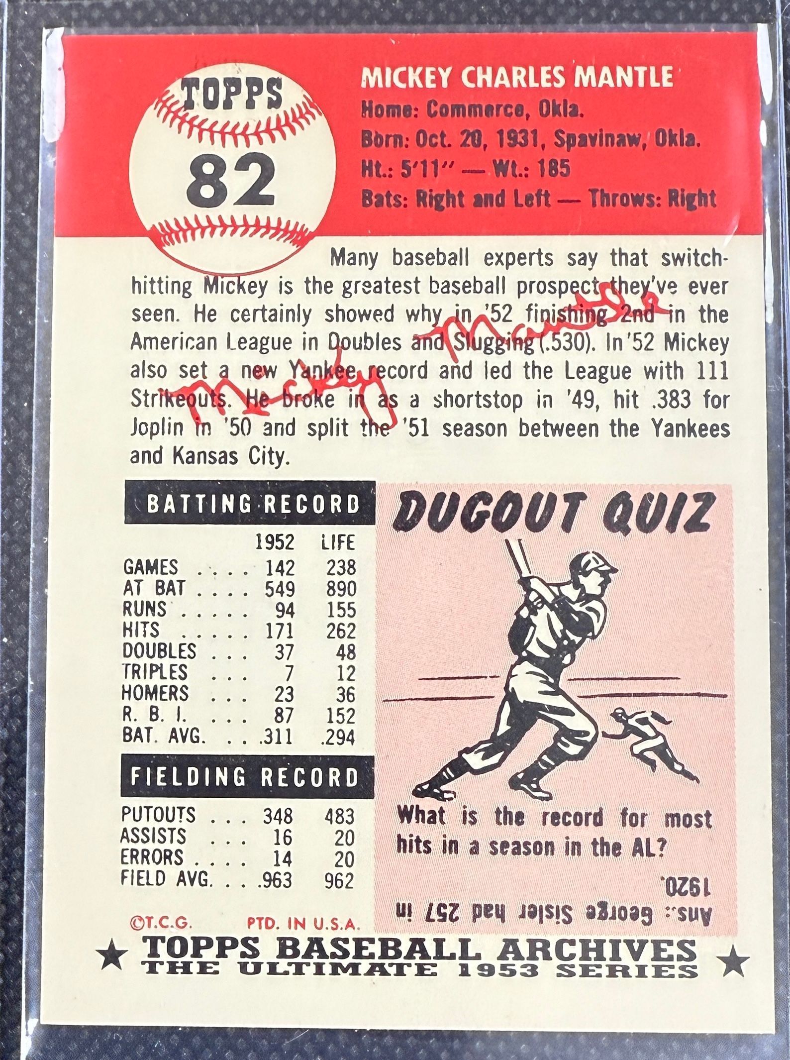 53 TOPPS RP MICKEY MANTLE