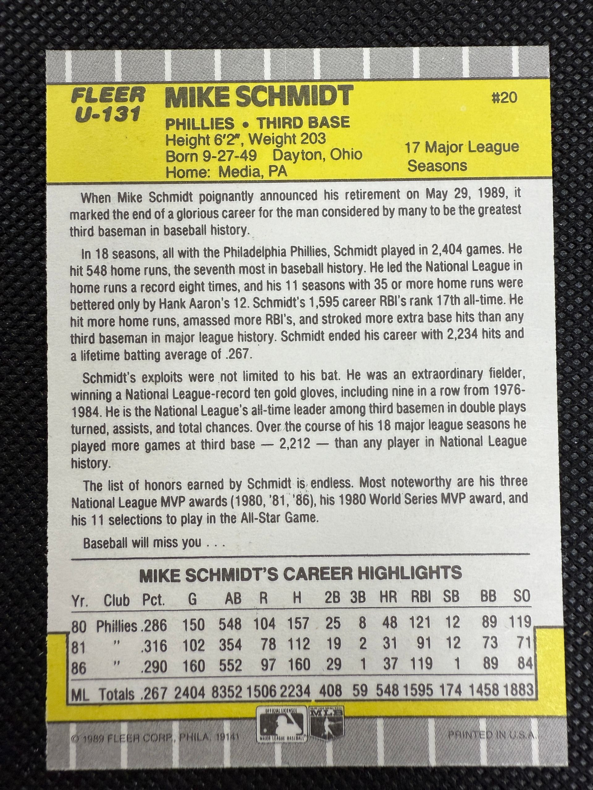 89 FLEER UPDATE MIKE SCHMIDT
